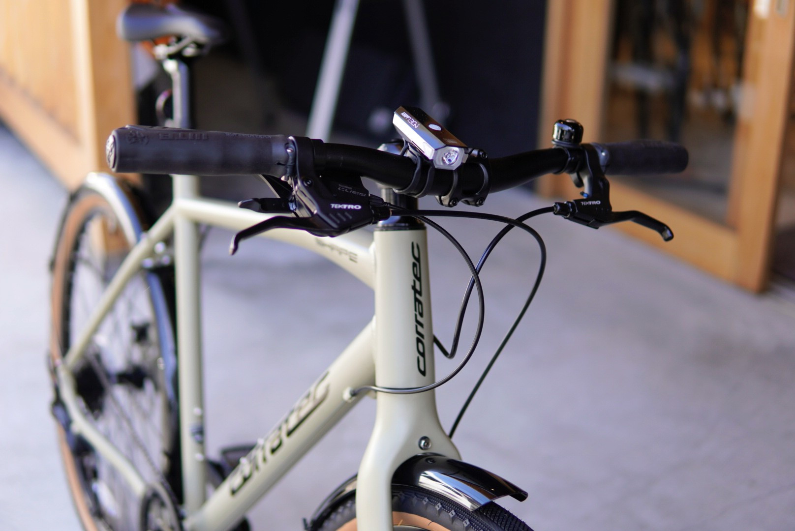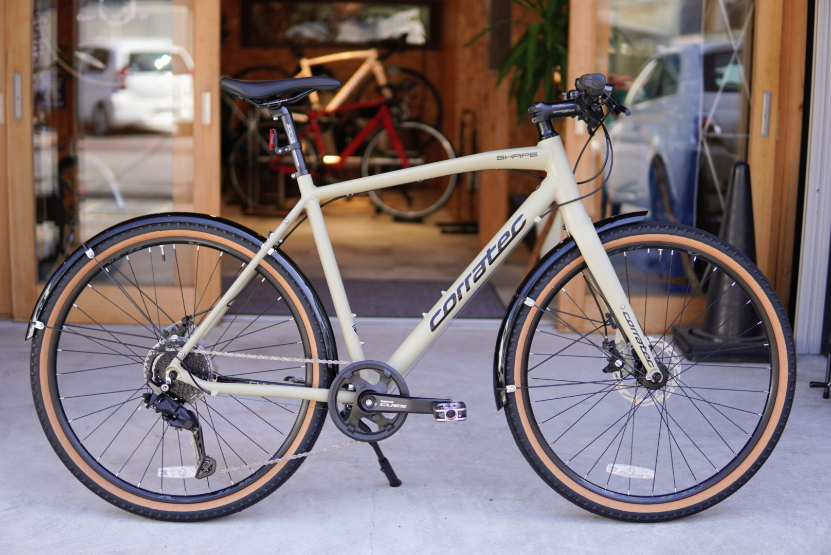 ご予約いただいておりました corratec の太めタイヤのクロスバイク【SHAPE CHUBBY】、組み上がりました。
