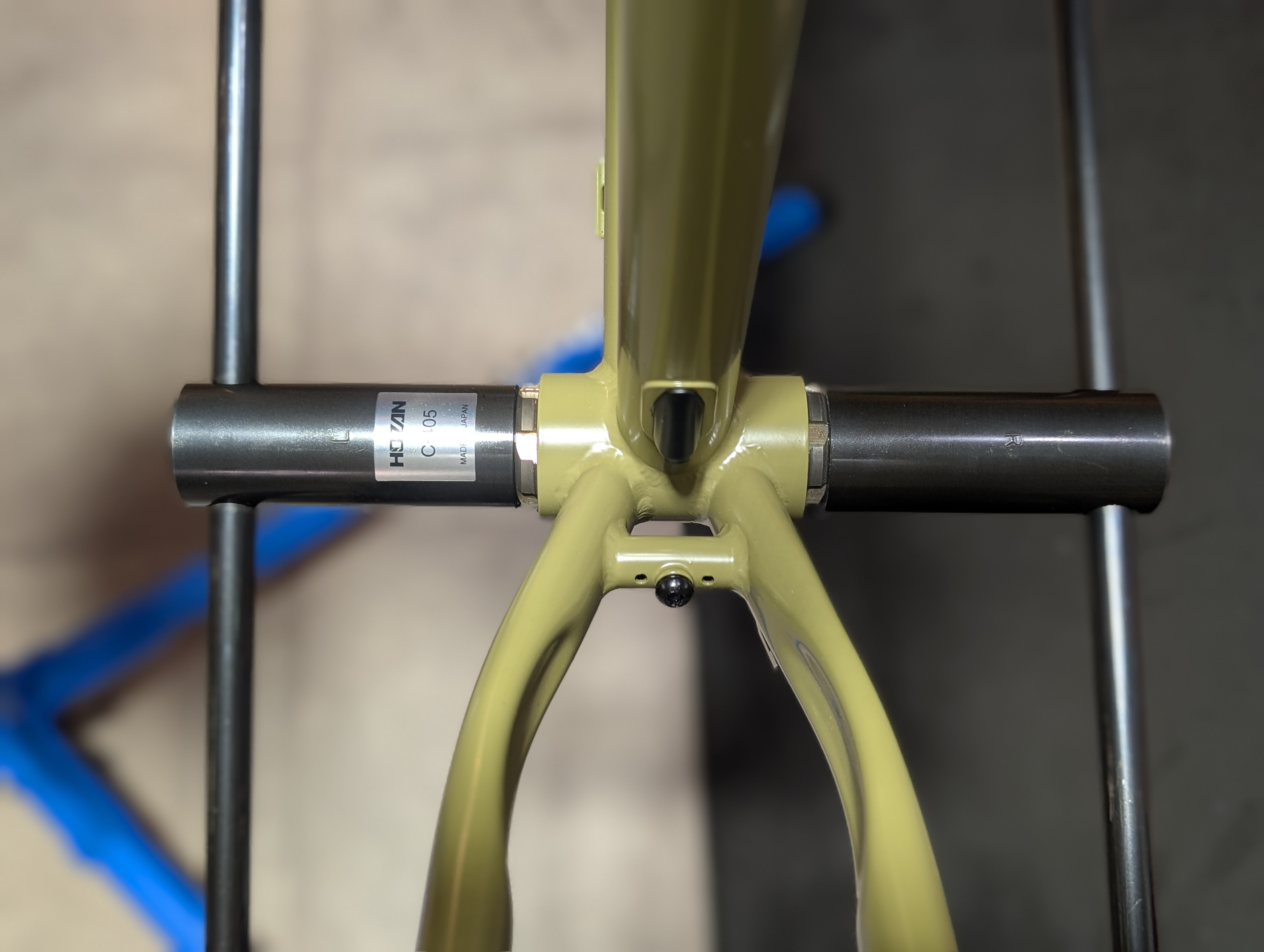まずはボトムブラケット部のタッピング&フェイスカットを行い、組付け準備完了。