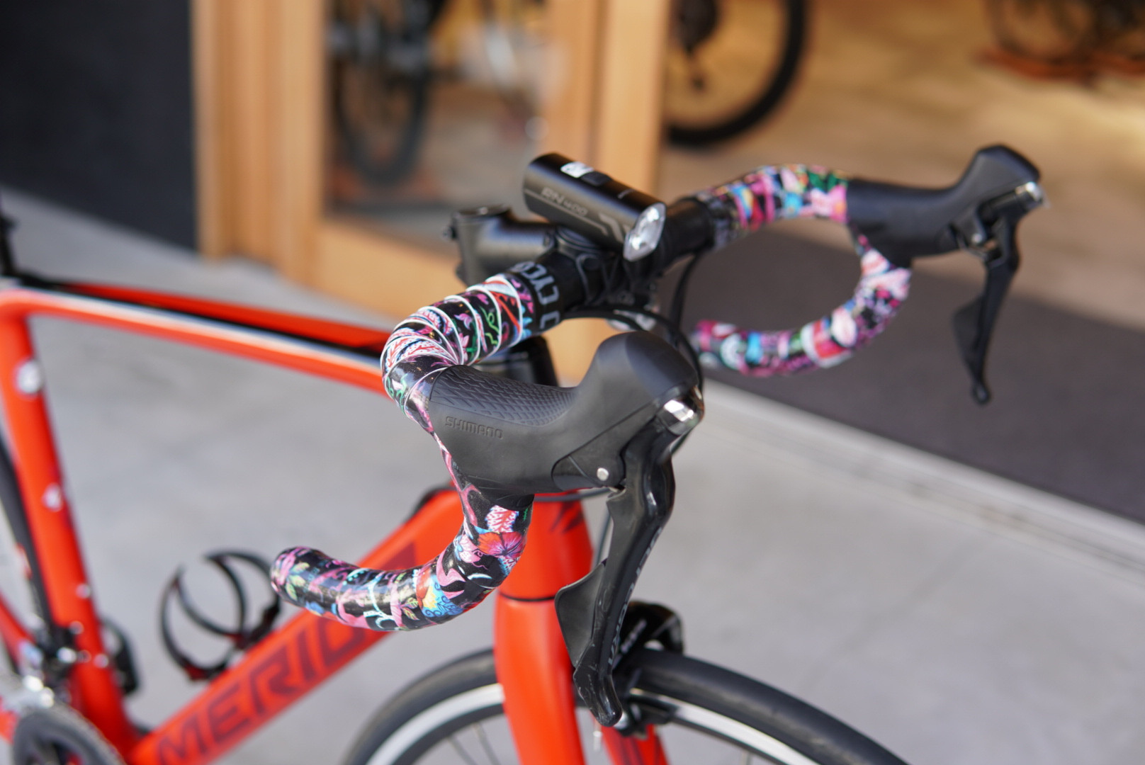 最後はお持ち込みいただいた、ちょっぴりサイケデリックなバーテープを巻いて完成!